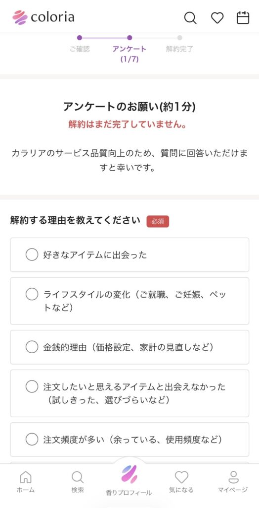 • 解約手続き自体はシンプルで、マイページから5分ほどで完了
