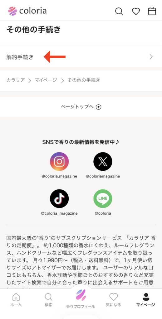 カラリアの解約手続きは、マイページからのみ可能です。そのため、まずはログインできるように対処することが必要になります。